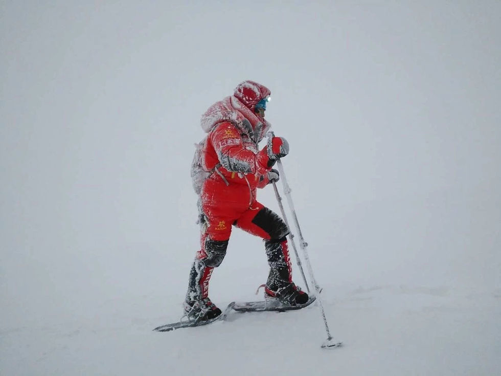 This time, we were entirely surrounded by fog and snow. When I was walking, I could only see two people on the rope in front of me, and we were relying entirely on flags placed during 2AC to guide our path.